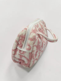 - Material: Pink & ivory pile (terry-cloth) Trotter monogram textile with leather trim