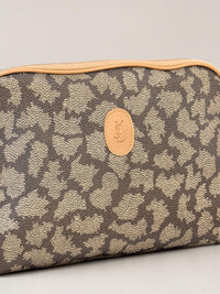 A piece of quietly luxurious YSL history: a vintage clutch in the Maison's distinctive printed monogram canvas, finished with natural vachetta leather piping and the signature YSL cartouche at the centre. Zip-top closure, clean lines and the kind of proportions that feel effortlessly chic day or night.
